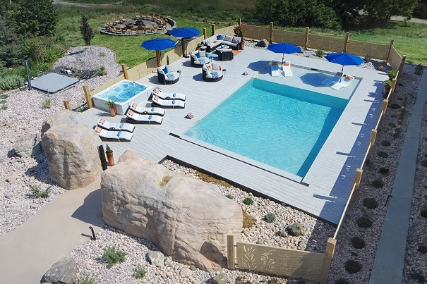 The finished pool with the BF4 vault hidden under the deck just past the tanning shelf.